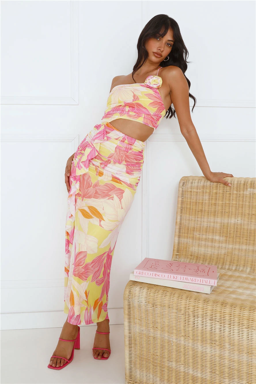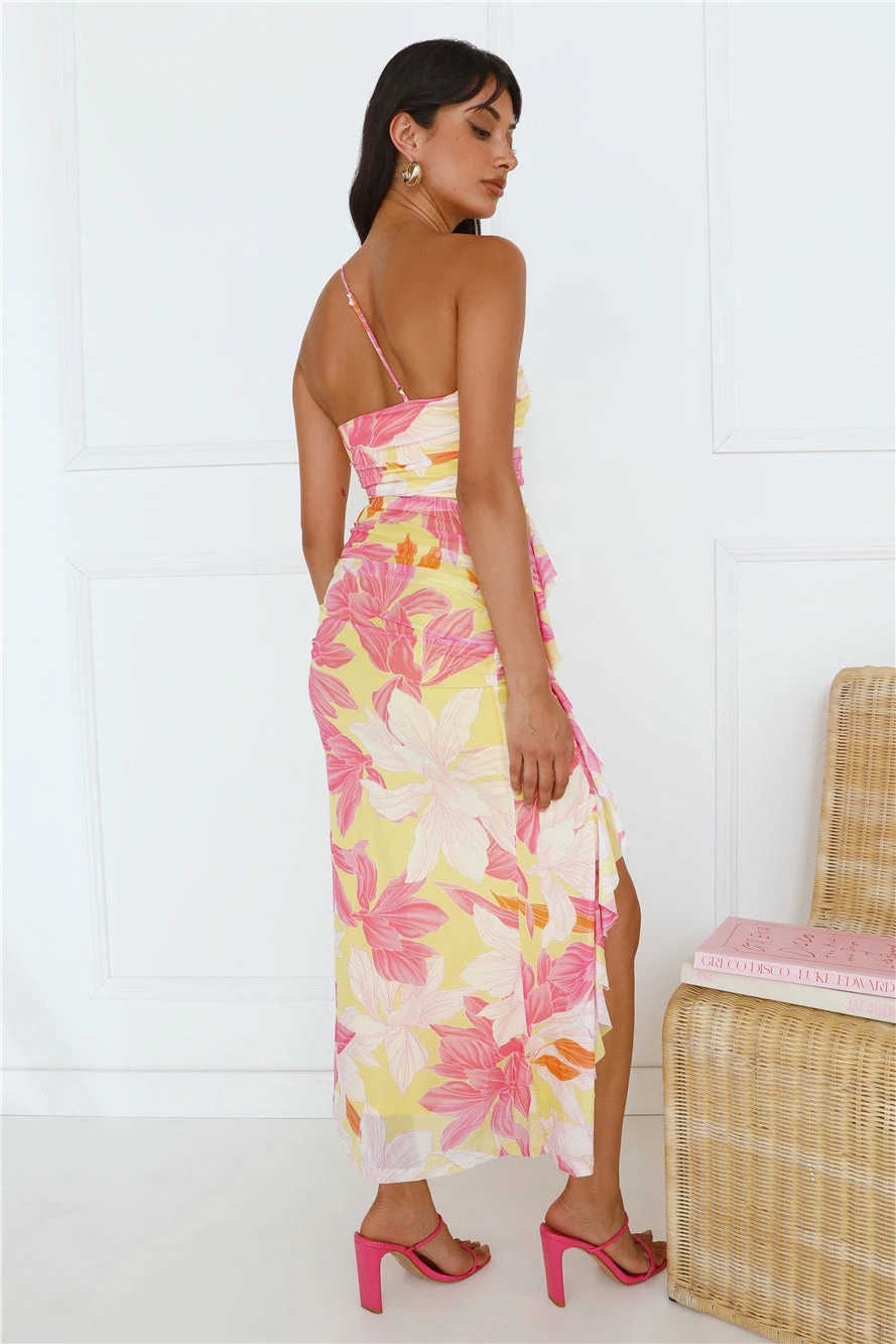 Enter the room in the Another Lover One Shoulder Mesh Maxi Dress. Featuring a gorgeous cutout to the waist and a flower brooch. Style with heels for an extravagant ‘fit.