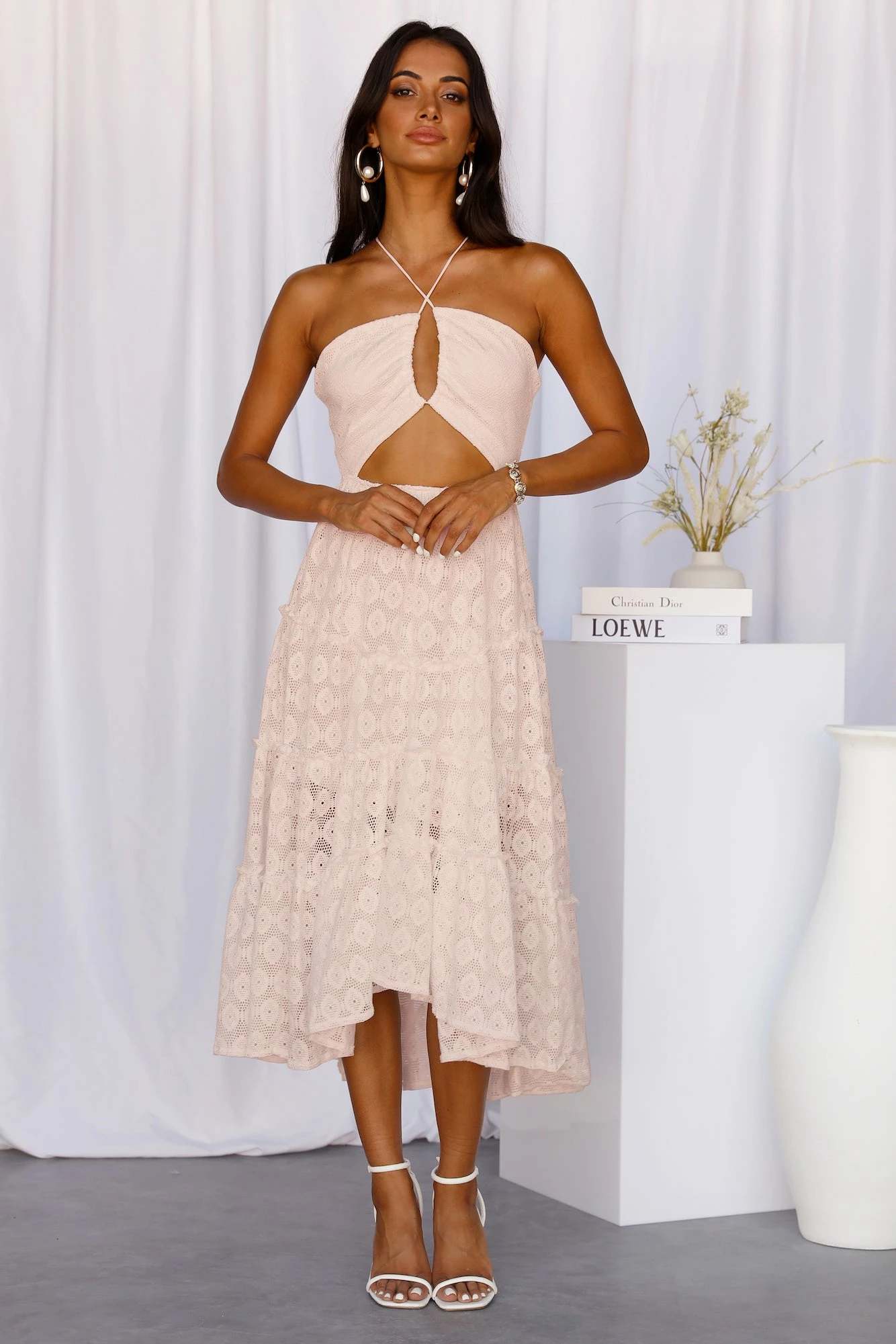 We’ve Been Good, how have you been? Much better now that you’ve found this killer maxi. Featuring a sweetheart neckline with a front cut-out, an open back with a tie and a tiered skirt. Style yours with mules and waves.