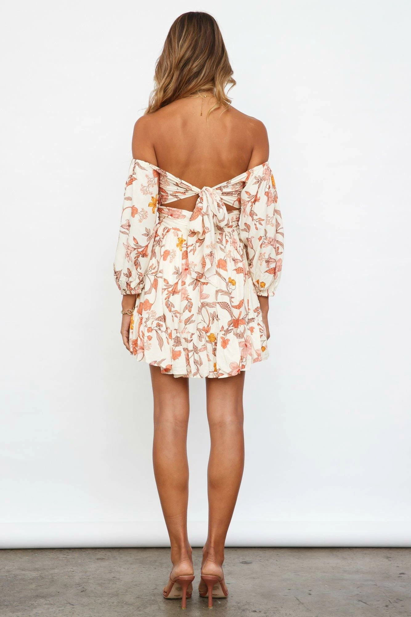 Inspired by our fave This Is Espionage Dress, we’re way too excited by the Dinner Party Dress. It features a ruched bust with a matching off-the-shoulder neckline, breezy bouffant sleeves, a snatched waistline, and a flared skirt with ruffle trimming. For that flirty finish, we’ve finished the dress with waist ties and a flirty floral print! We’re wearing ours with sun-kissed skin, matching jute wedges, and a crochet net bag.