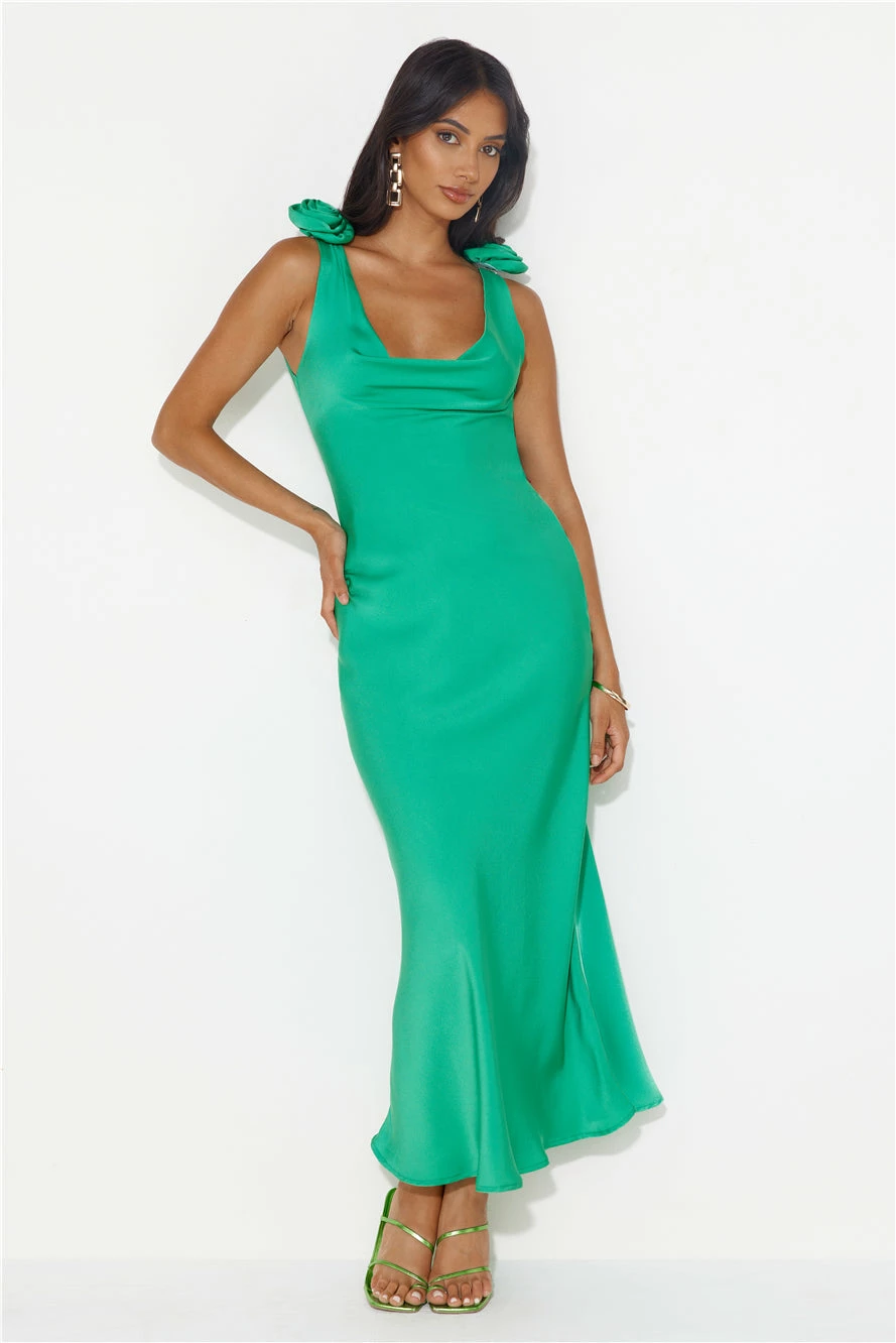 Girl, enter the room and make an entrance. The Event Of All Events Satin Maxi Dress features a cowl neck and back with gorgeous flower brooches that can be removed and placed anywhere on the dress. Style with heels for a ‘fit we love.