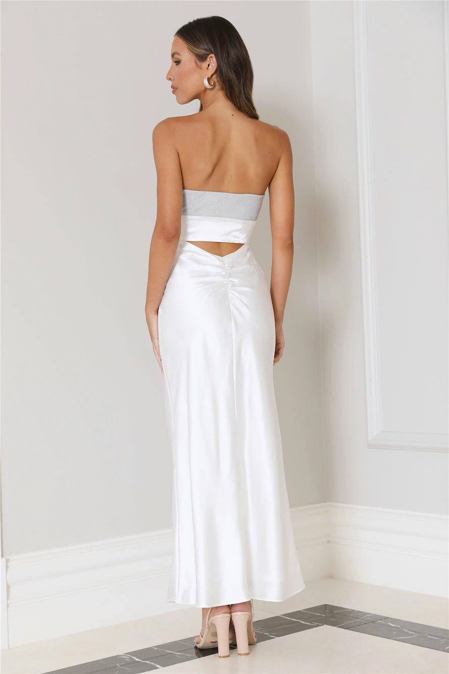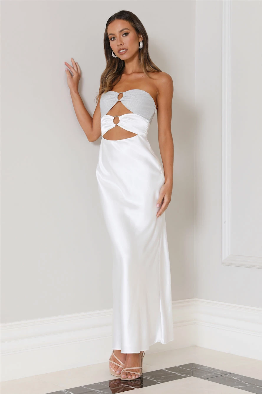 Switch up your style game in the Glam Vibes Maxi Dress. Featuring a glittery top and ring design. Style with heels for all the compliments.