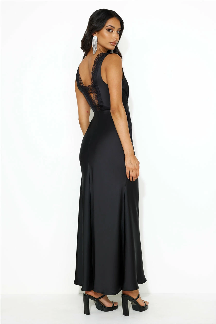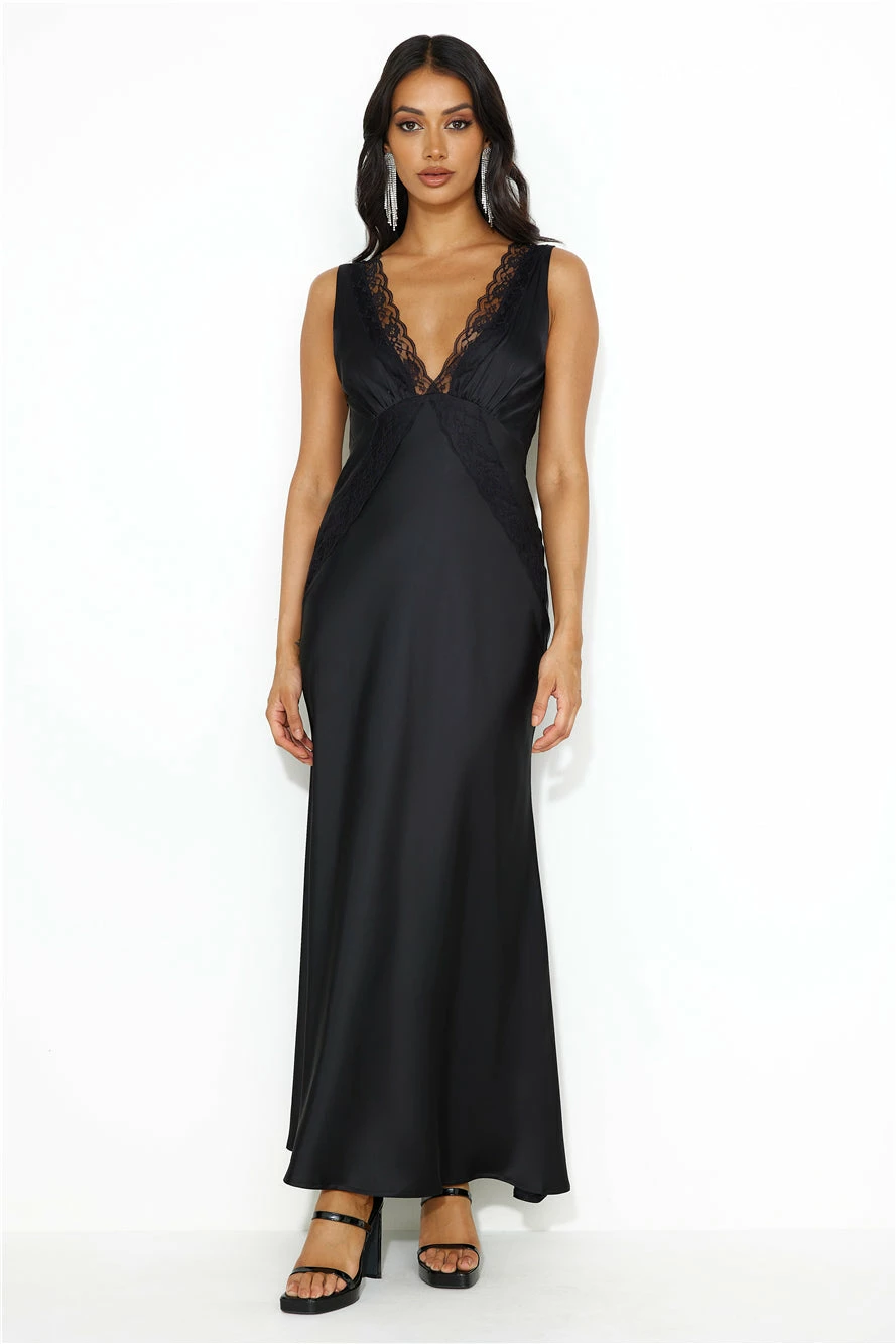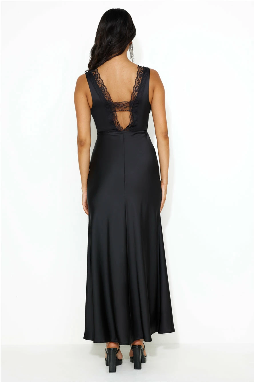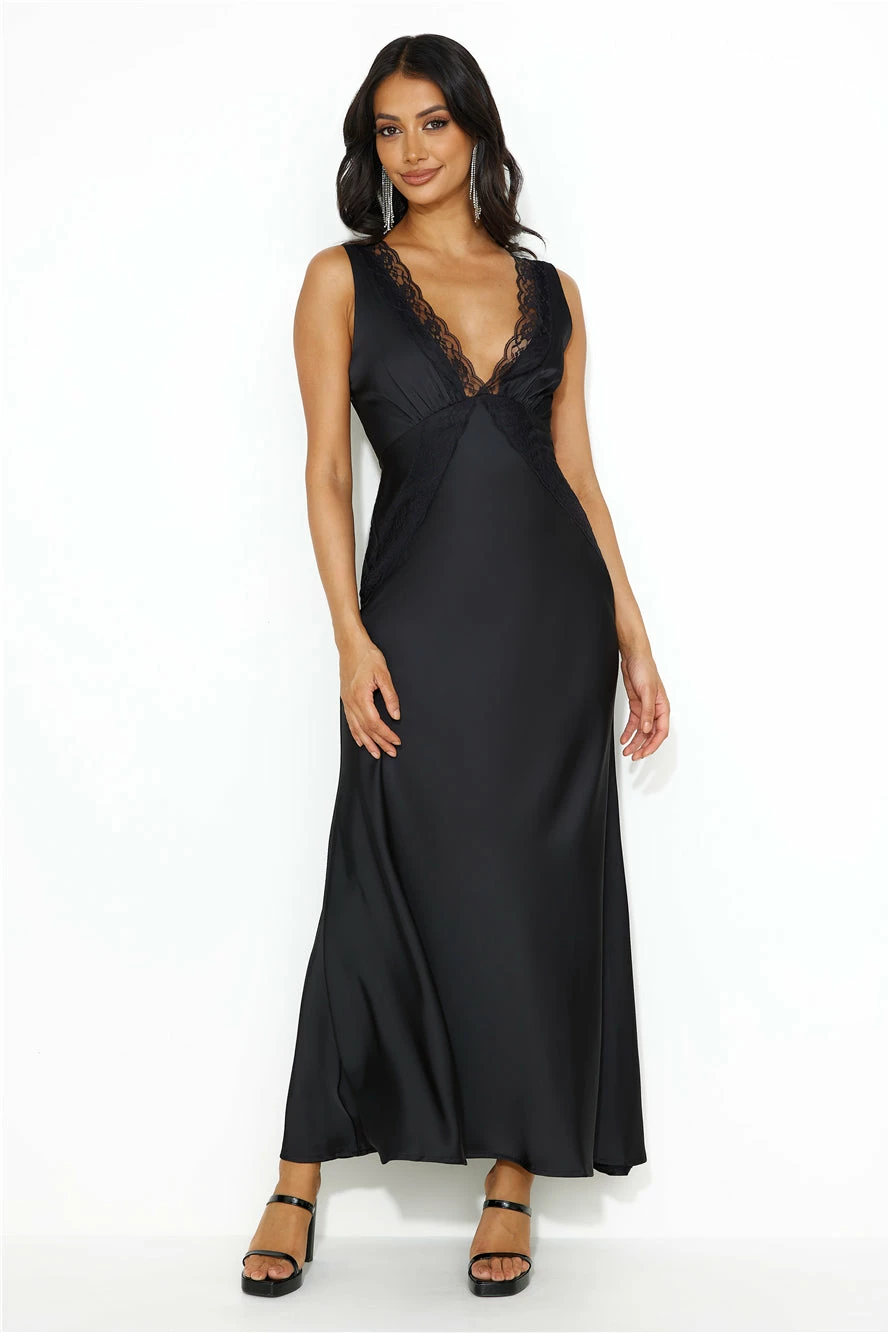 It’s giving luxe, girl. The Juicy Stories Satin Maxi Dress features a V-neck design and a gorgeous lace trim. Style with heels and curls for all the compliments.