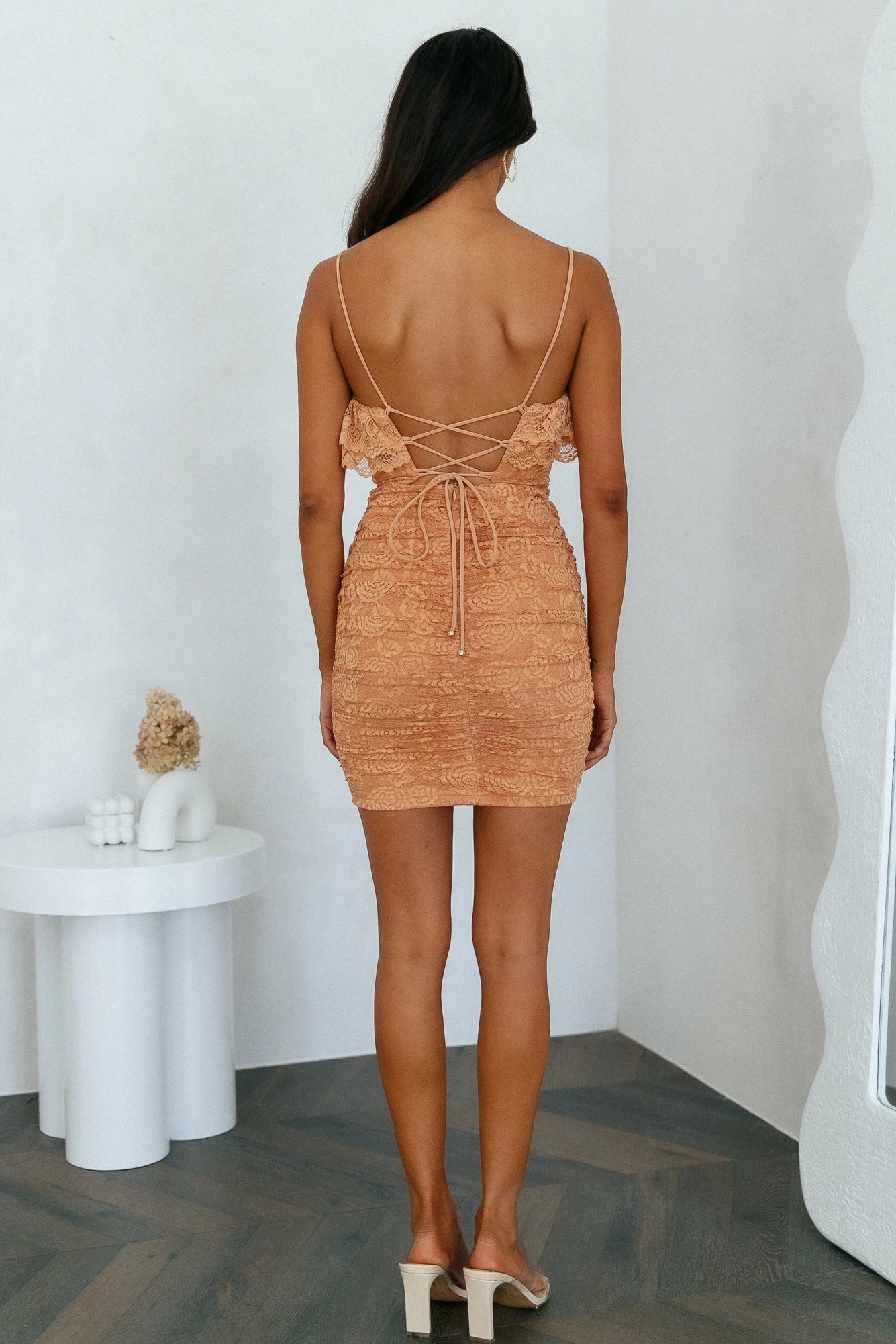Only the prettiest vibes around here. Lovely times are yours in the Laced Hearts mini. This dress has a straight neckline, an open back with a lace-up detail and ruching all over! Style yours with mules and waves.