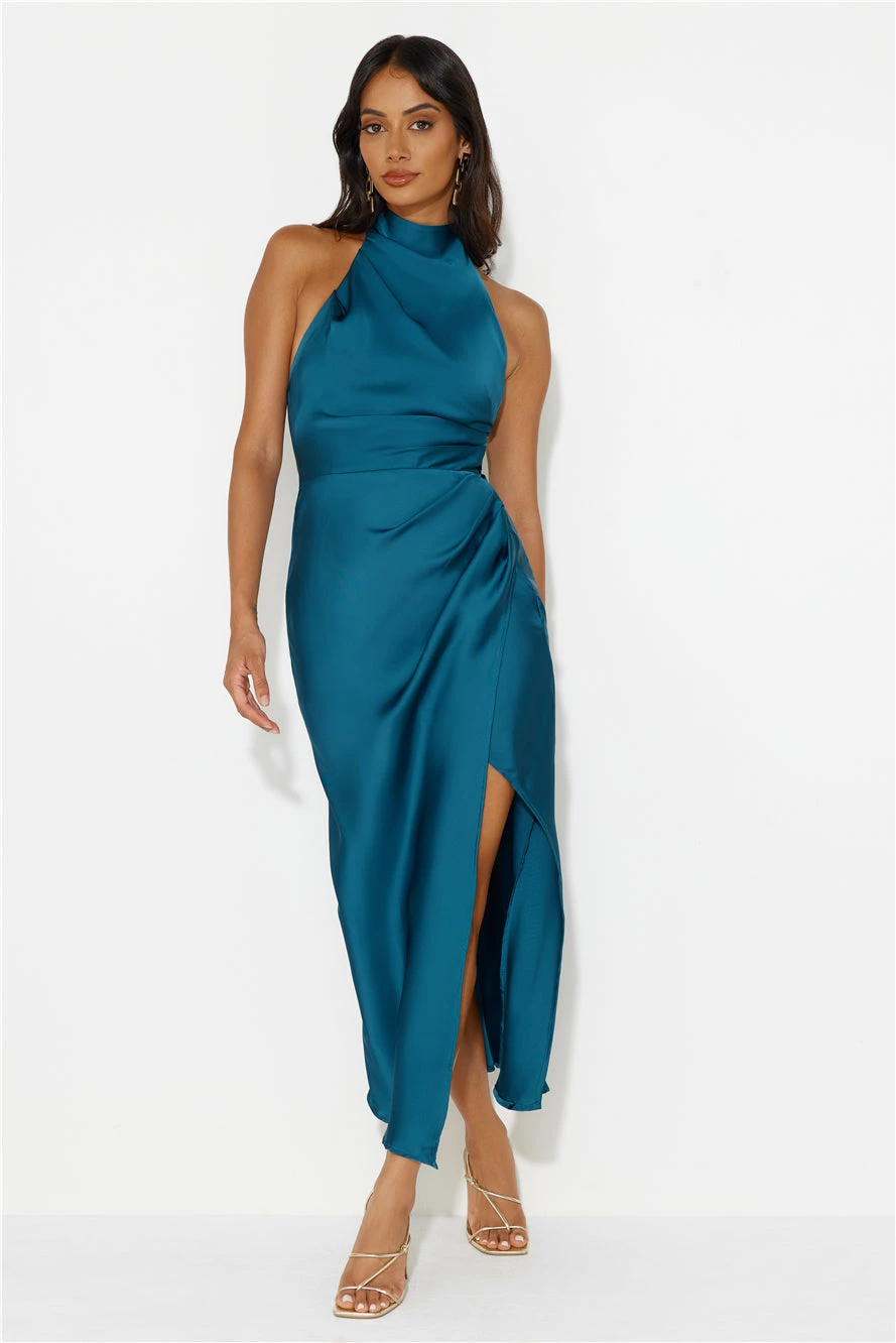 Be the first to review “Talking Truth Halter Satin Maxi Dress Teal” Cancel reply